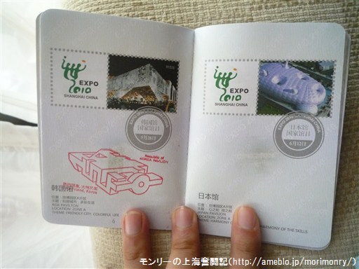 韓国のページには後日韓国パビリオンのスタンプを